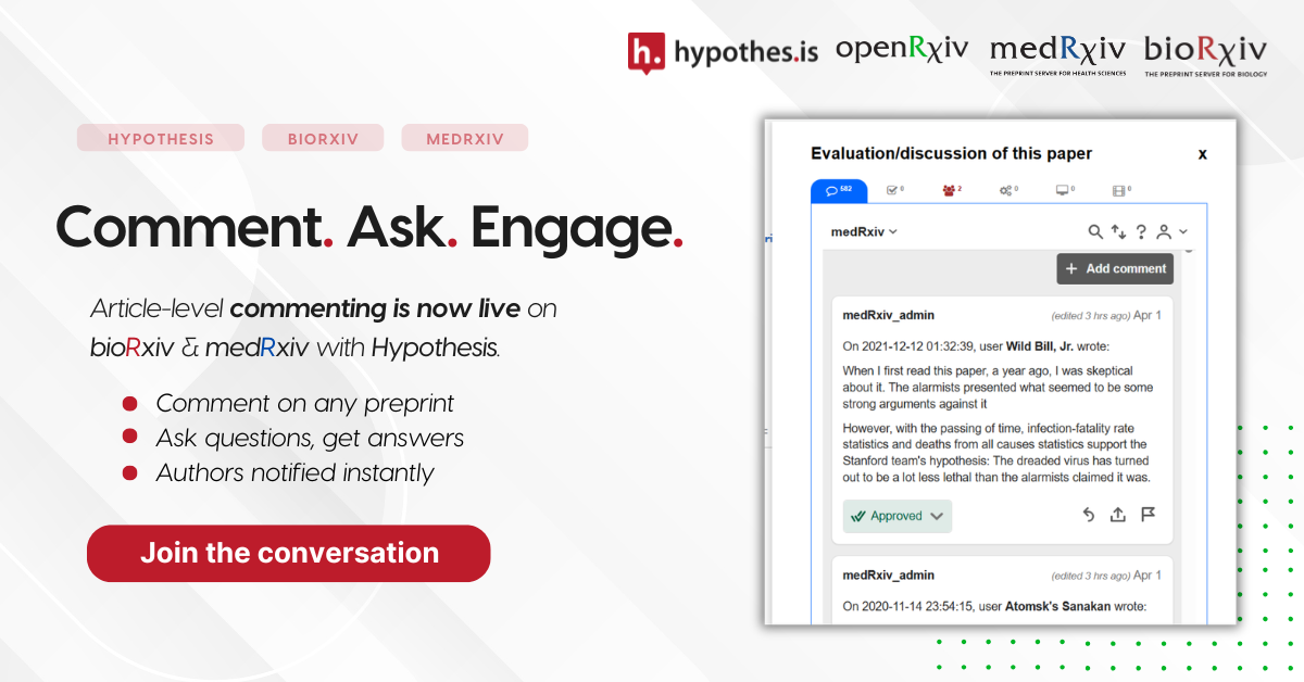 SAN FRANCISCO, CA, UNITED STATES, April 8, 2026 /EINPresswire.com/ — bioRxiv and medRxiv, the leading open-access preprint servers for the life and health sciences, have released a new article-level commenting experience that enables researchers, educators, and readers to engage directly with preprints. The launch builds on a long-term partnership with Hypothesis, the social annotation company used by millions of students and instructors each year to support collaborative reading and critical engagement.